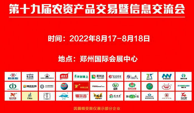 第十九届中原肥料(农资)产品交易暨信息交流会将于2022年8月17日-18日在郑州国际会展中心隆重召开,以“保障粮食安全,推进绿色发展”为主题,邀请了上百家参展商,包括生产商、渠道商、经销商、教科研单位、农民合作社和种植大户等。